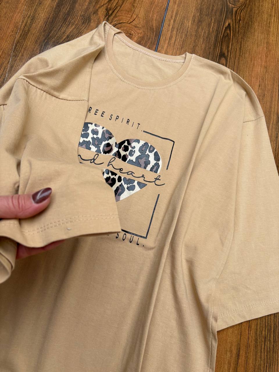 تیشرت باکسی طرح پلنگی زنانه پنبه گرم بالا
