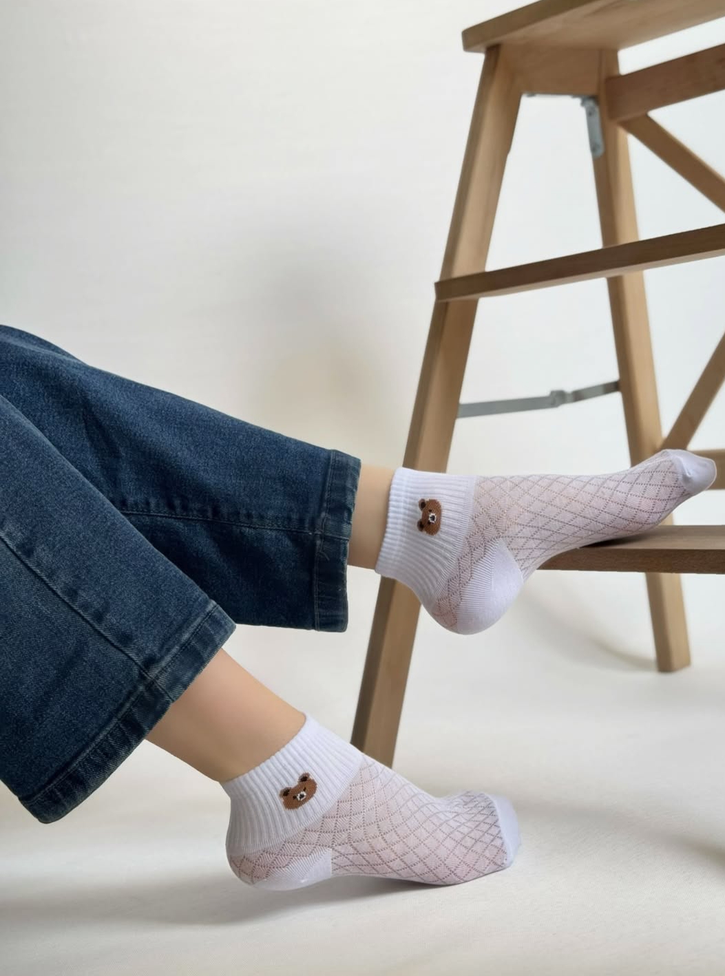 طرح خرس کوچک وسط جوراب و بالای جوراب