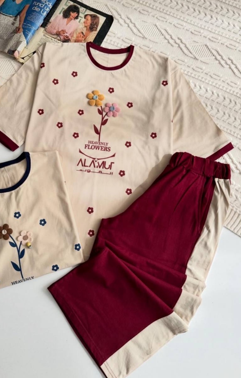 ست تیشرت شلوار گل پفکی